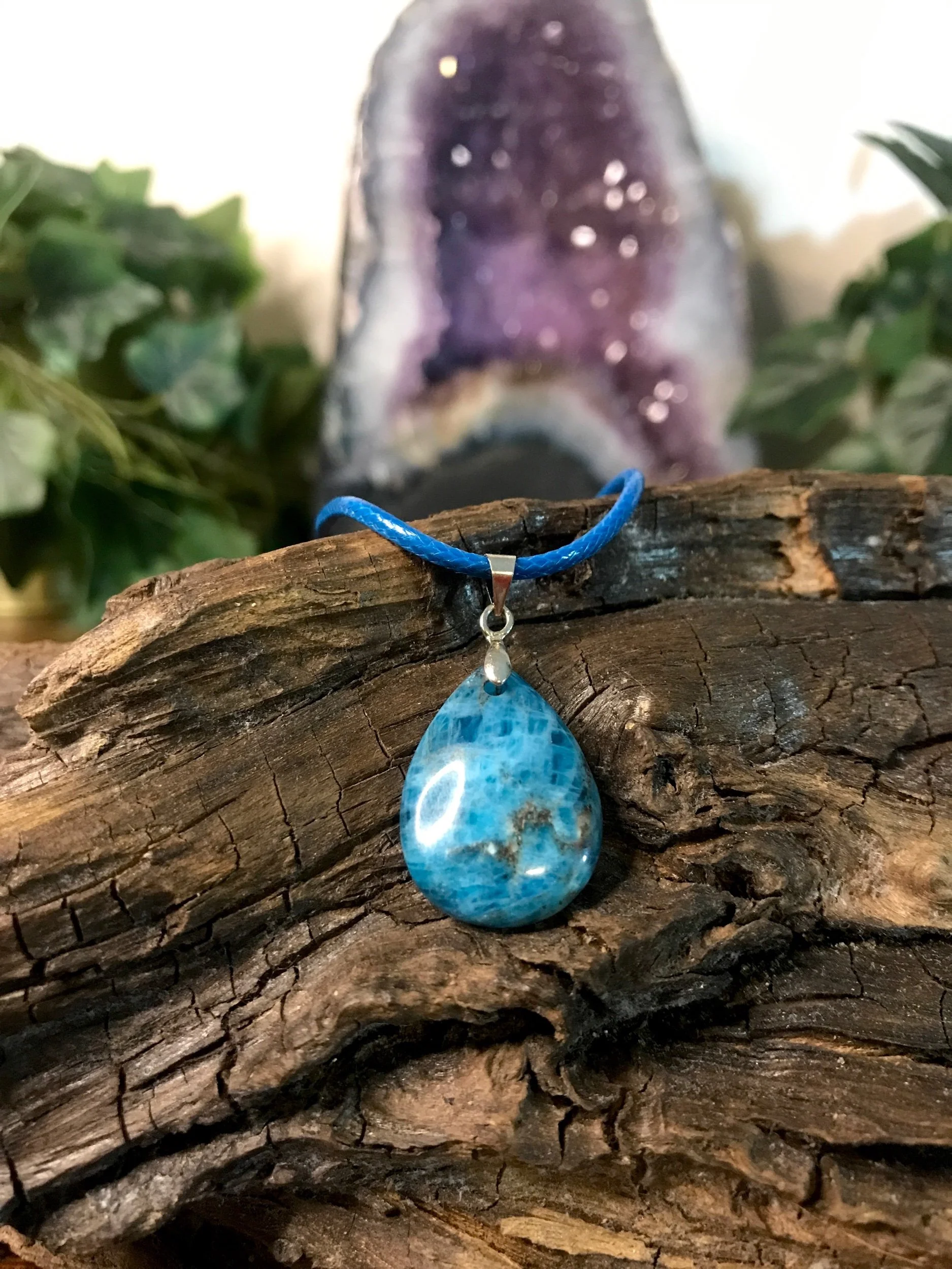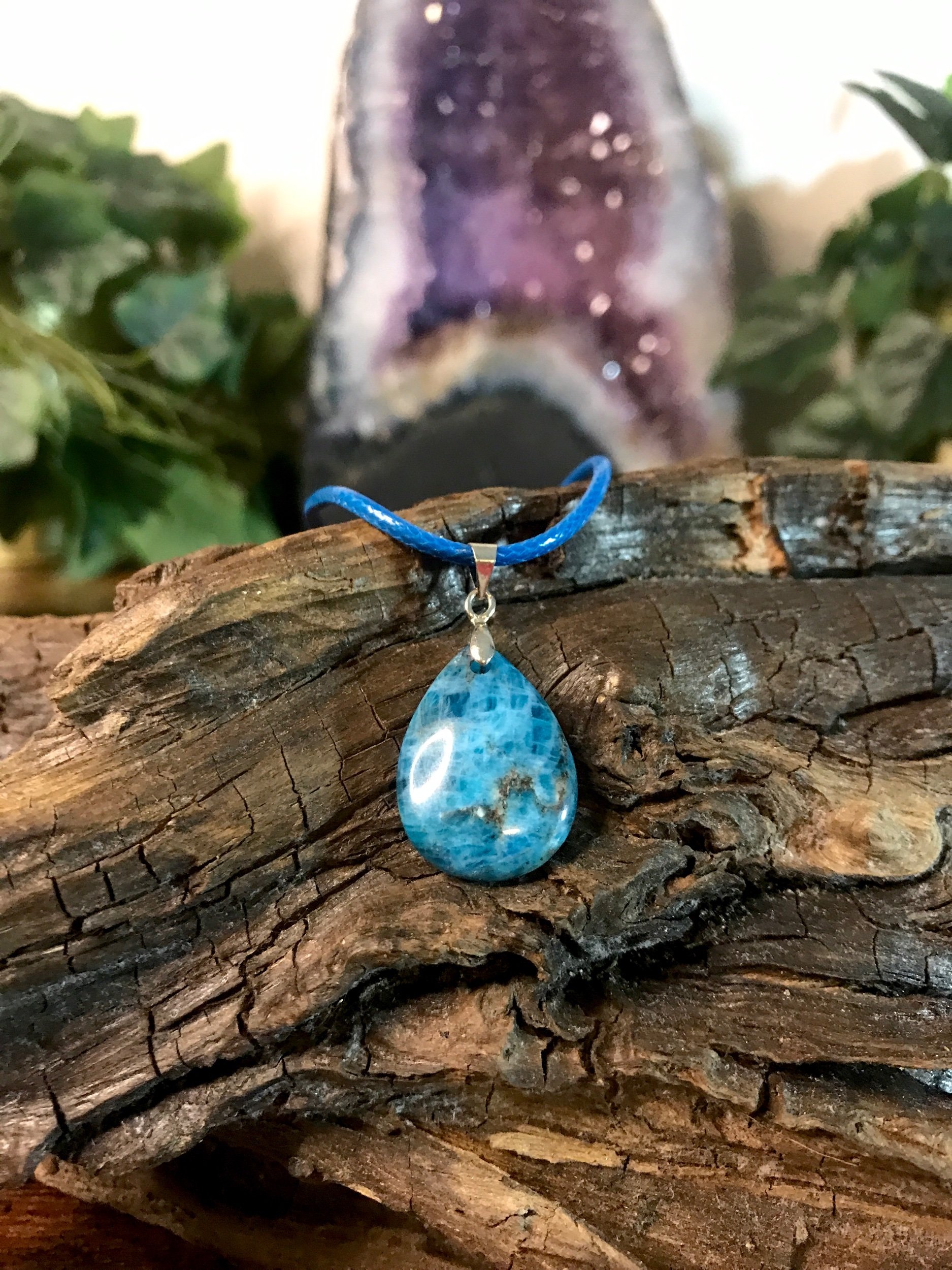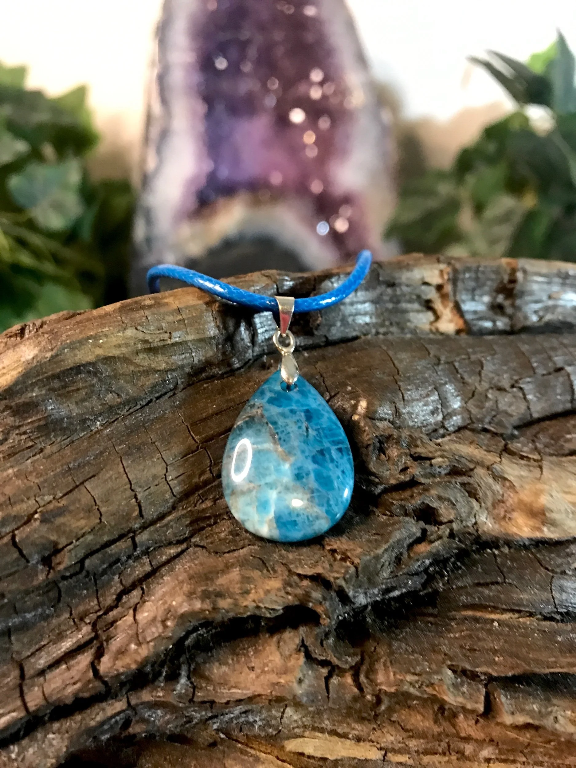 Shop All › Blue Apatite Teardrop Necklace Image 1 of 3 Image 2 of 3 Image 3 of 3 Blue Apatite Teardrop Necklace $14.00 Blue Apatite teardrop pendant on waxed cotton cord.Adjustable sizing with clasp closure. Add To Cart Added! Blue Apatite teardrop pendant on waxed cotton cord.Adjustable sizing with clasp closure. Discover More Quick View Carnelian Necklace $16.00 Quick View Amethyst Cluster Pendant Sale Price: $12.00 Original Price: $15.00 Sale Quick View Lepidolite Apple Pendant $7.00 Quick View Black Tourmaline Necklace Sale Price: $16.00 Original Price: $18.00 Sale Quick View Raw Black Tourmaline Heart Necklace $19.00