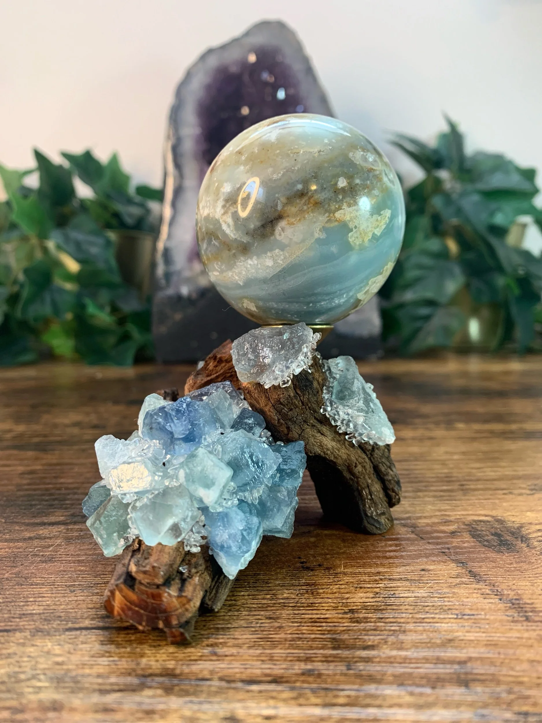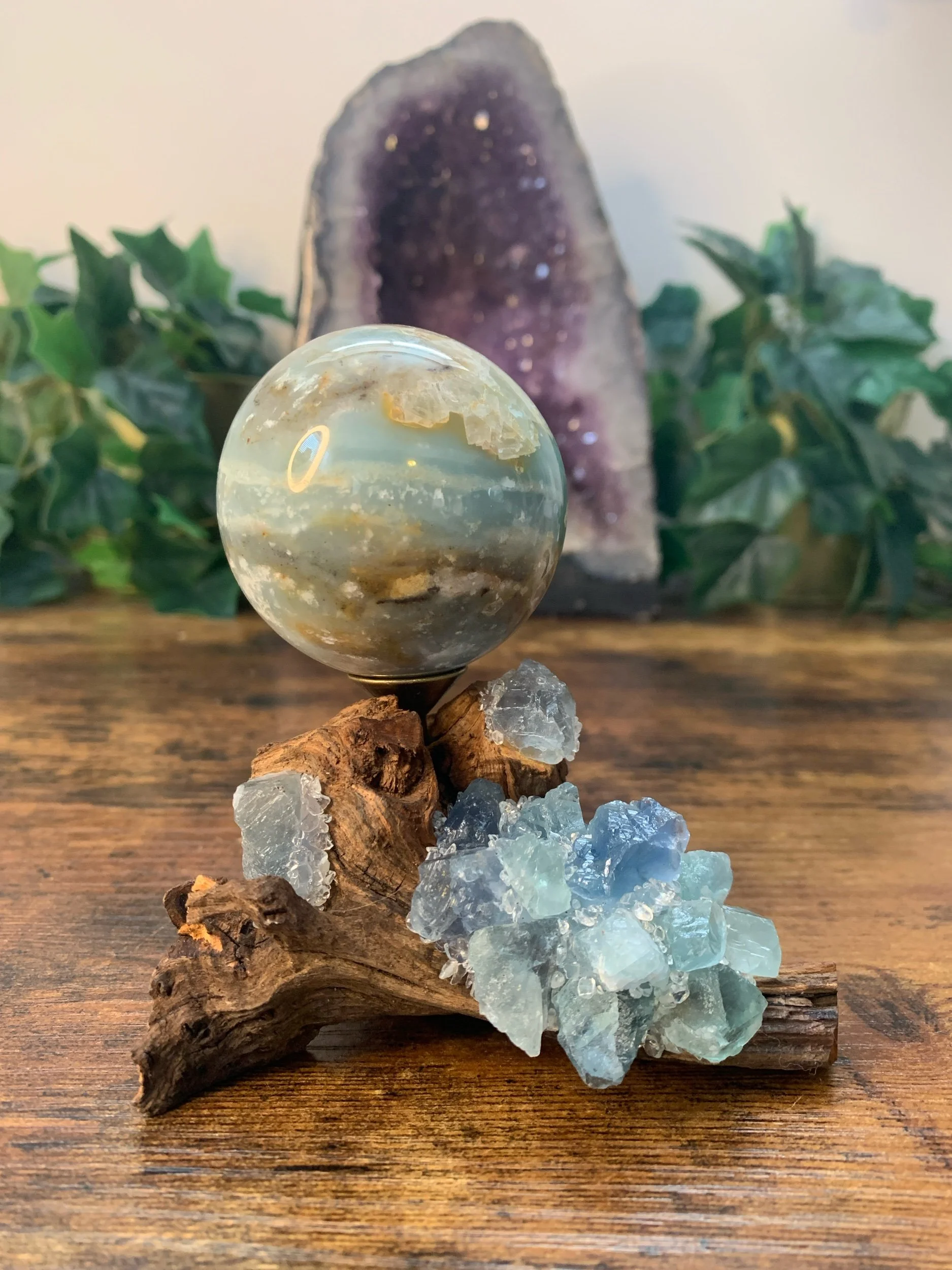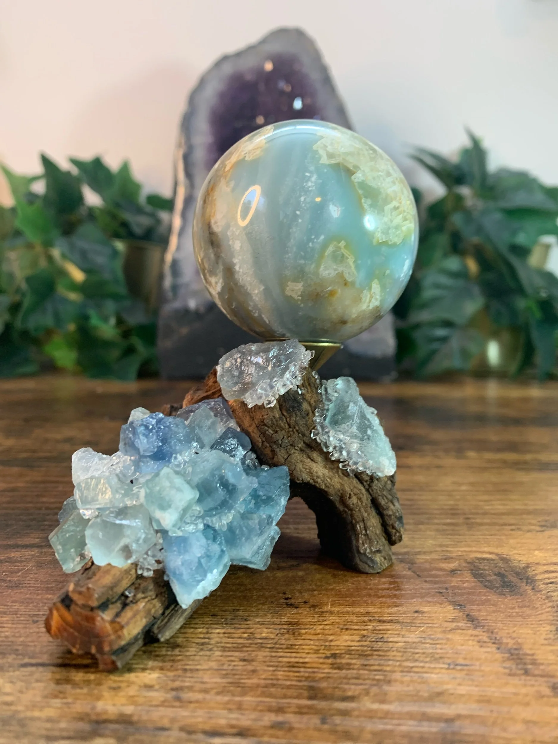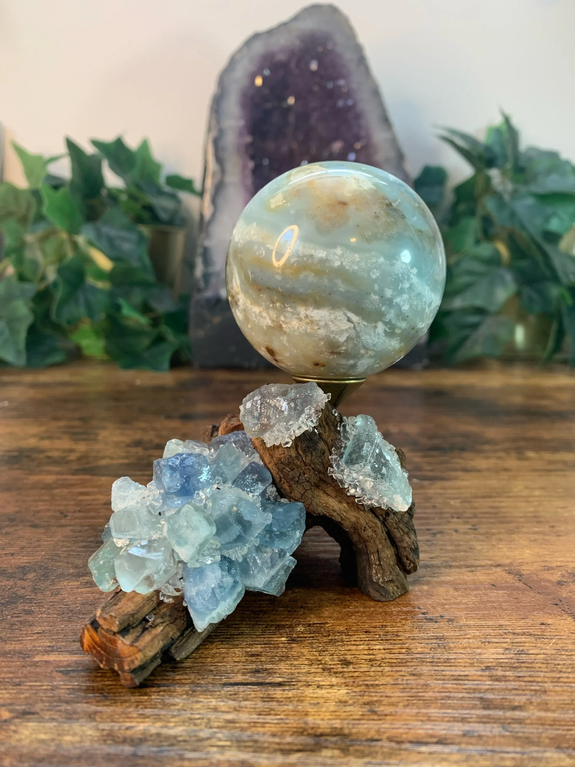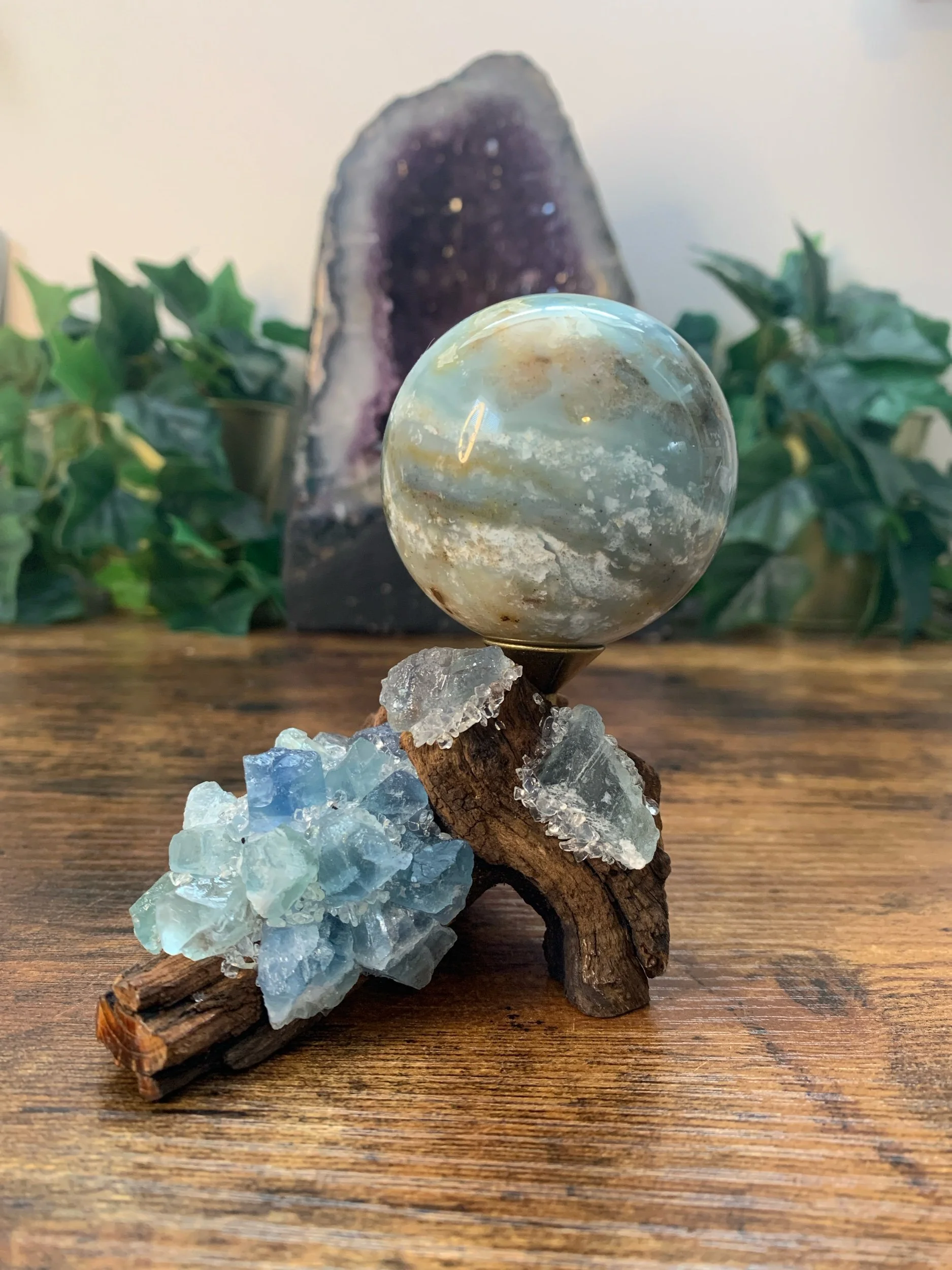 Caribbean Calcite Sphere + Stand