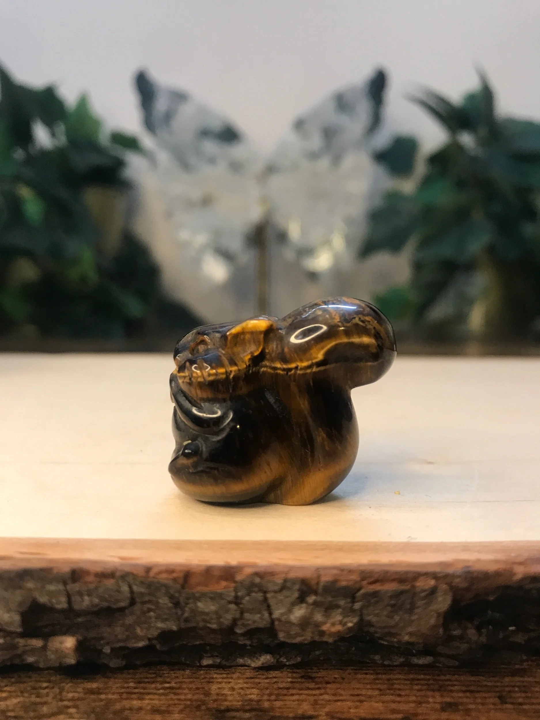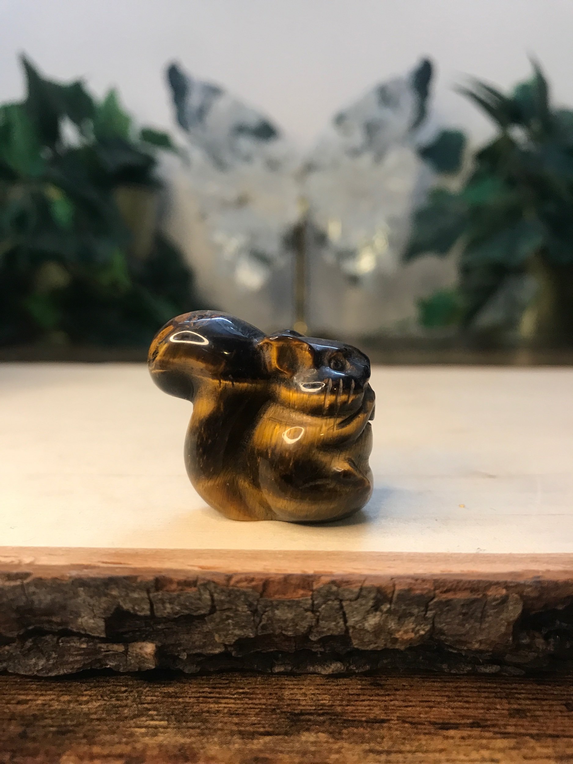 Small Tiger Eye Squirrel eating a nut carving.