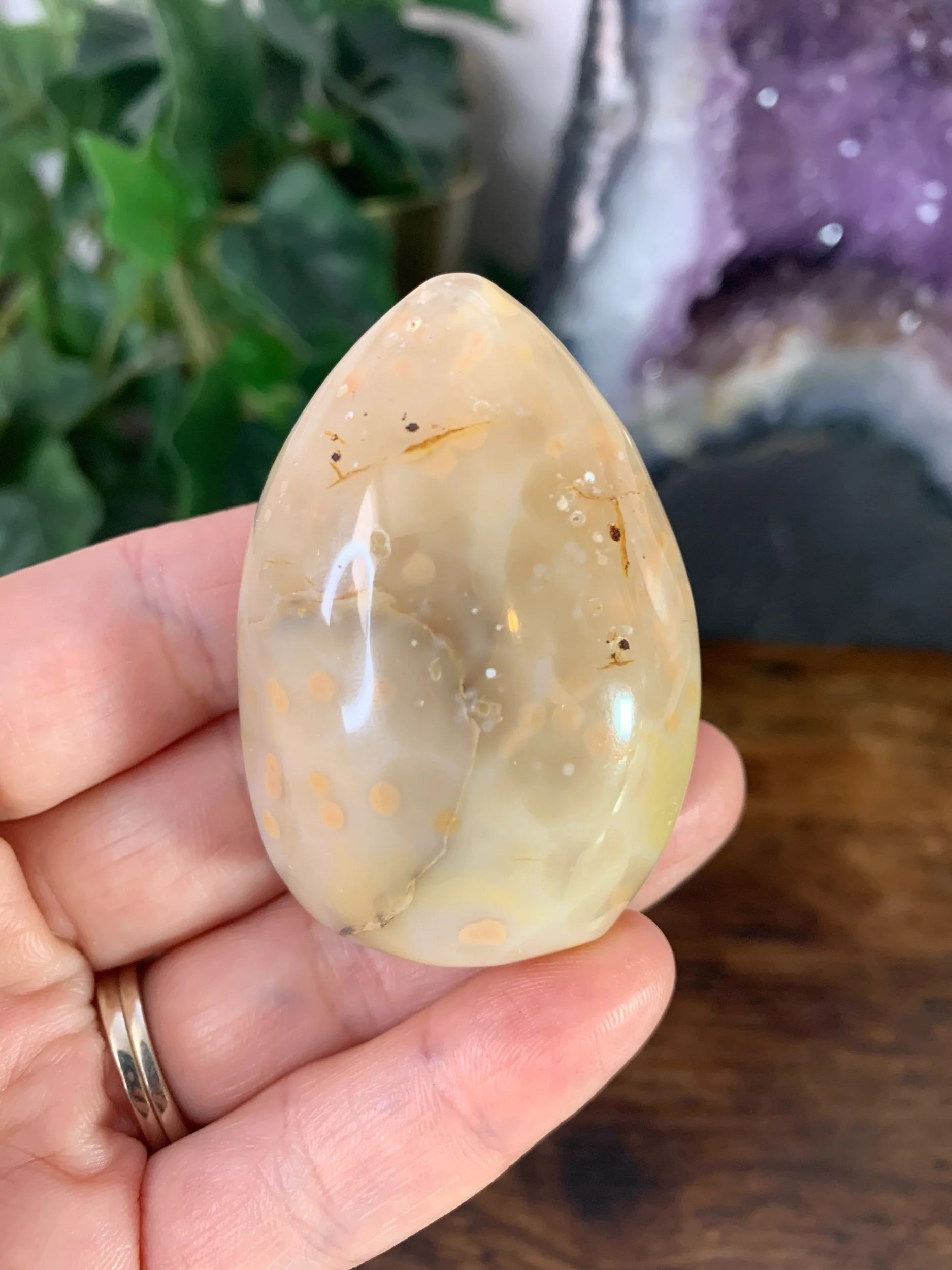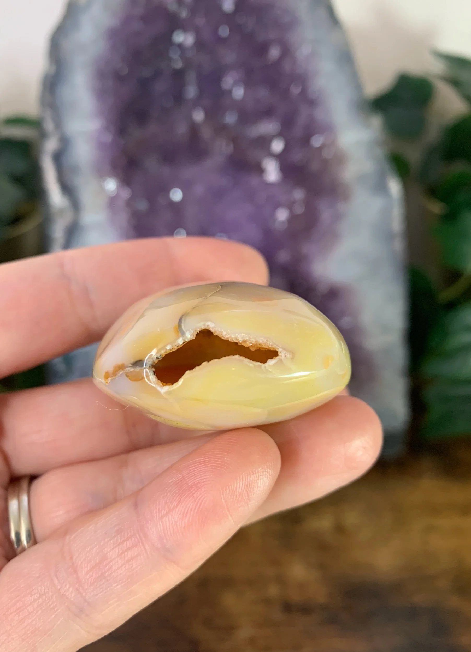 Yellow Agate egg shaped palm stone.