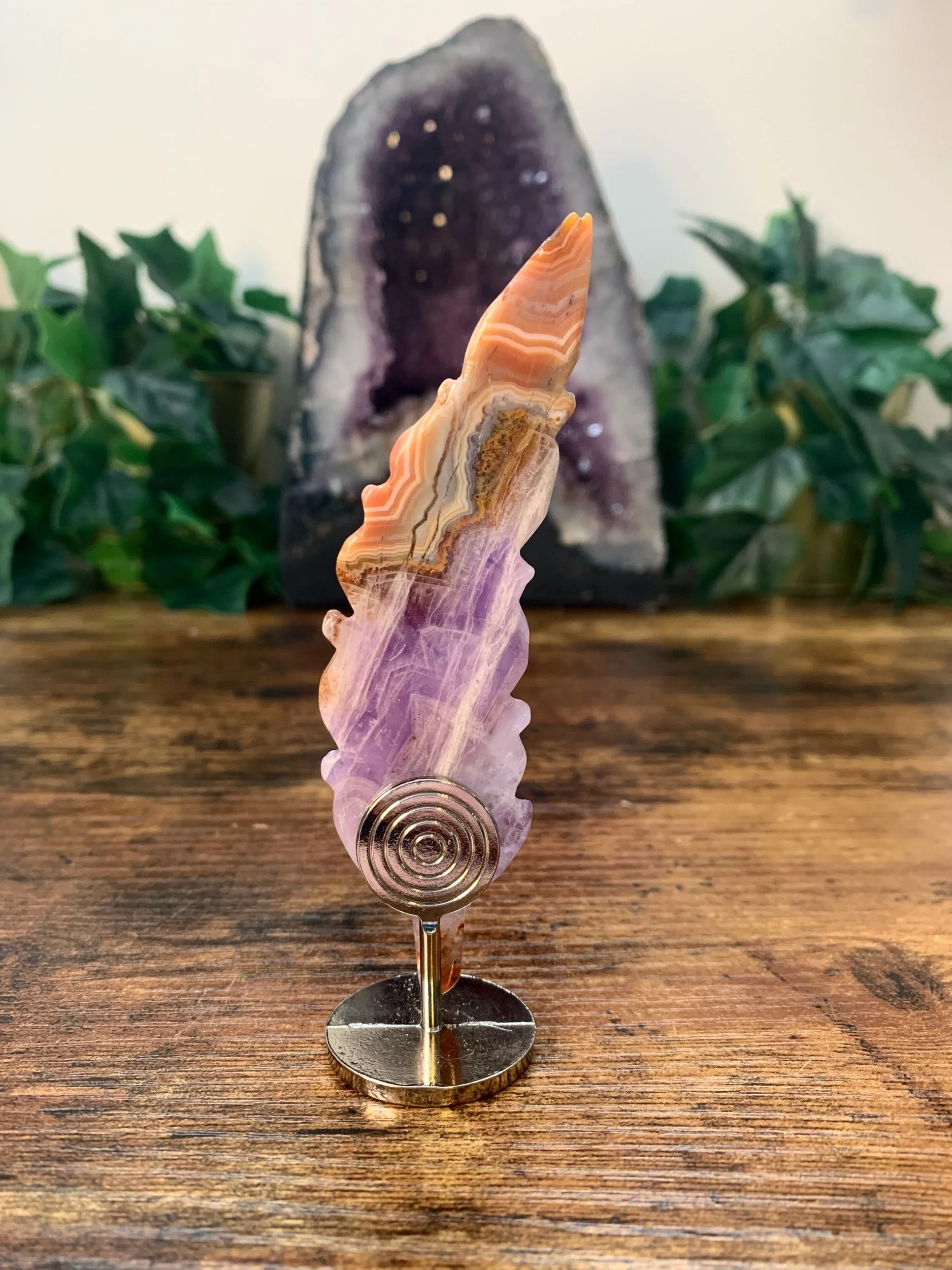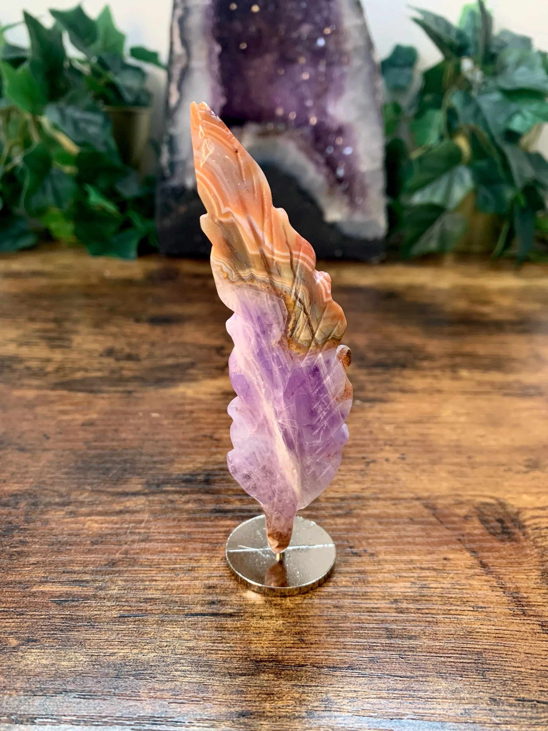 Shop All › Crazy Lace Agate + Amethyst Feather Image 1 of 2 Image 2 of 2 Crazy Lace Agate + Amethyst Feather $20.00 Approx size: 4 1/2 “ Add To Cart Added! Approx size: 4 1/2 “ Discover More Quick View Prehnite 8mm Bracelet $25.00 Quick View Orca Agate Flame $45.00 Quick View Golden Healer Turtle $9.00 Quick View Silver Sheen Obsidian Moon & Owl $18.00 Quick View Unicorn Stone Tumbled Stones $4.00