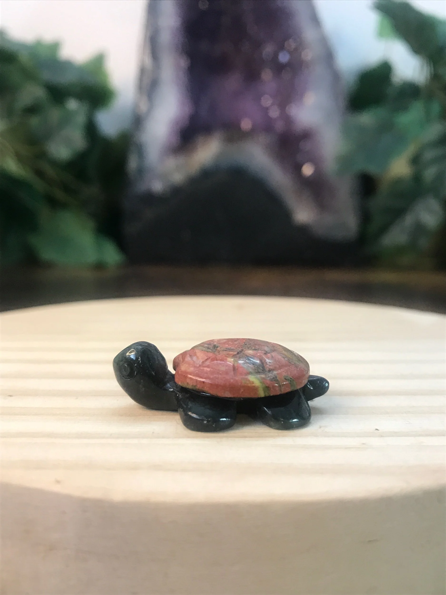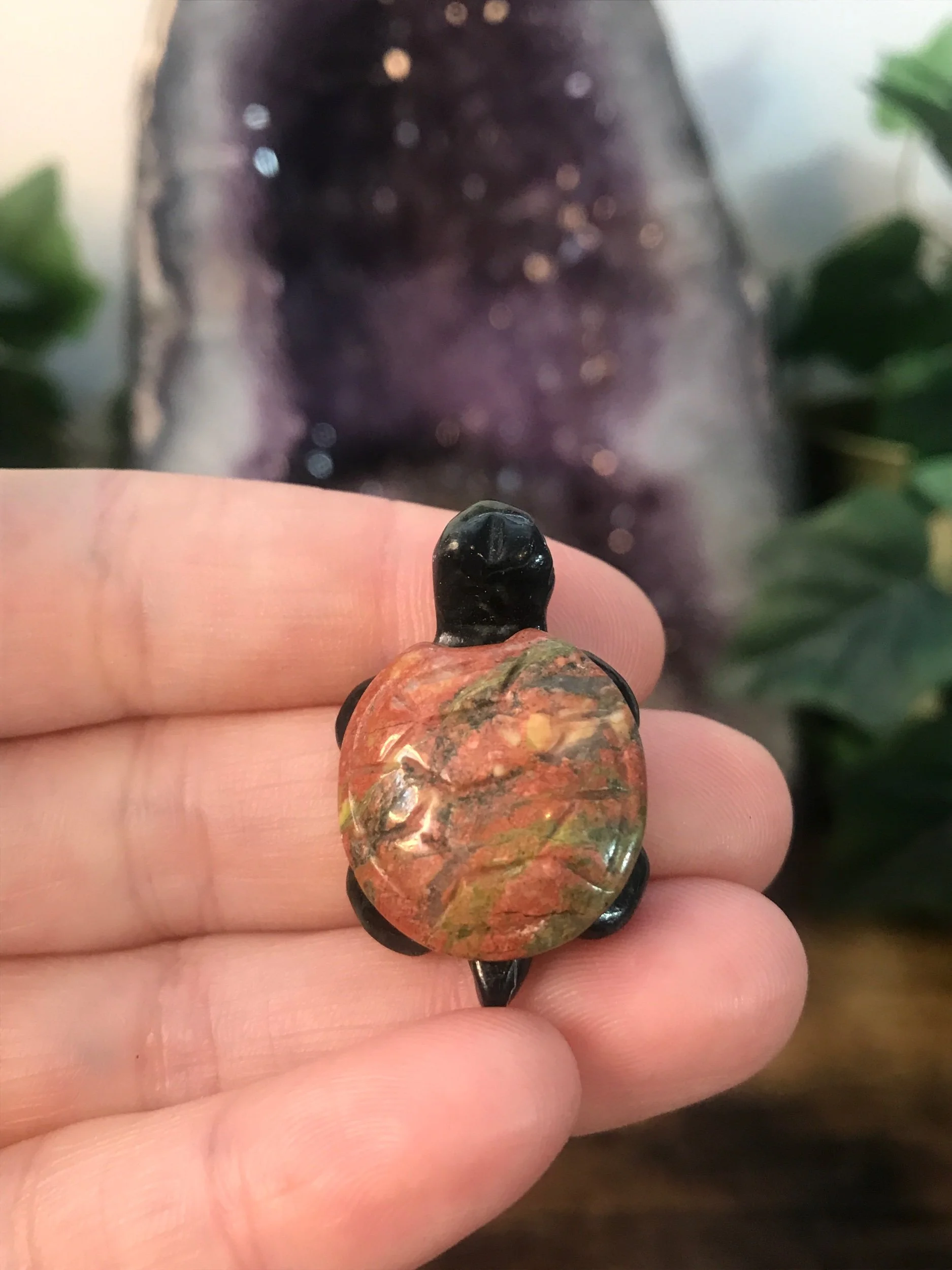 Small Unakite and Serpentine turtle carving.
