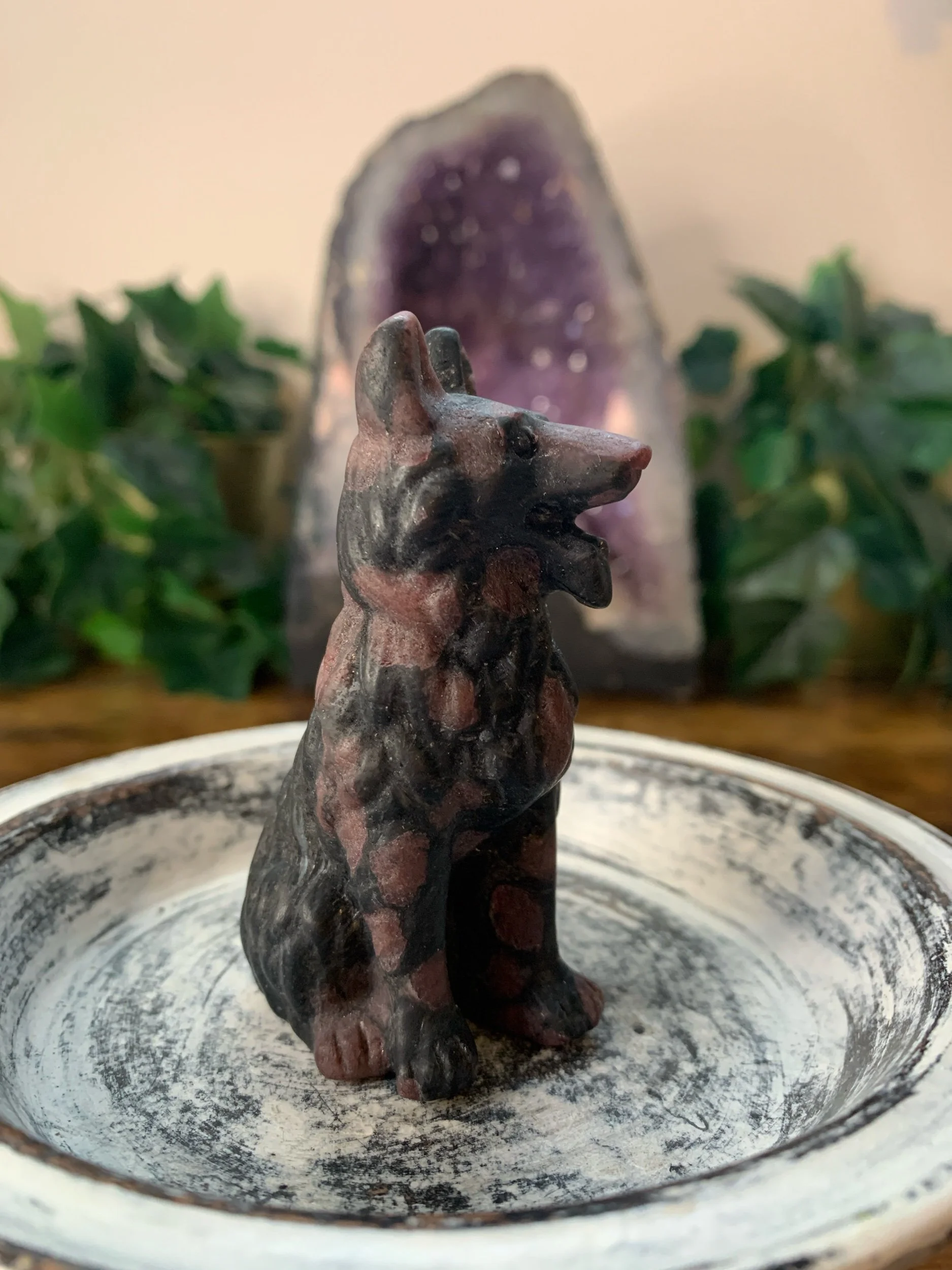 Garnet Dog Carving