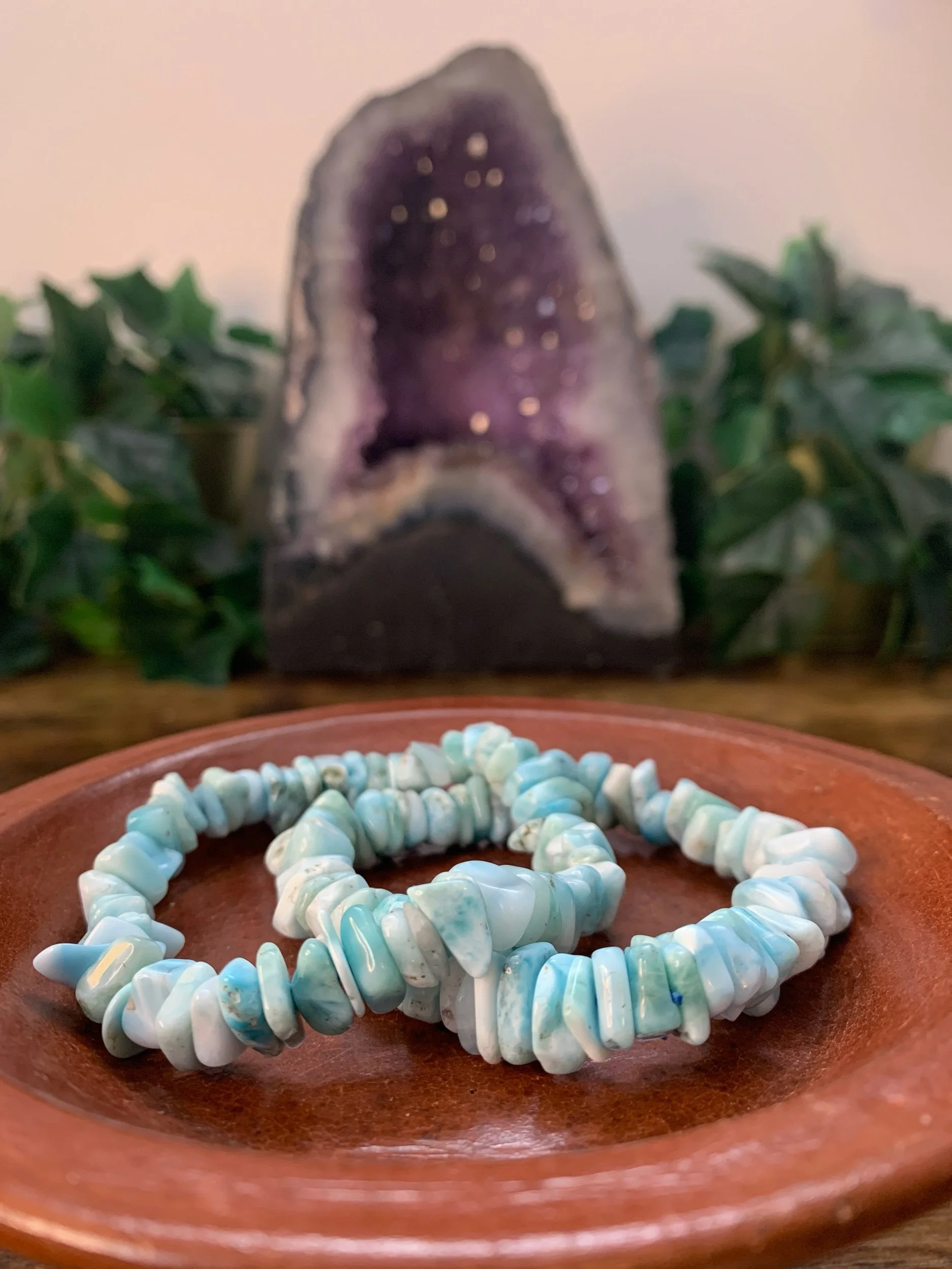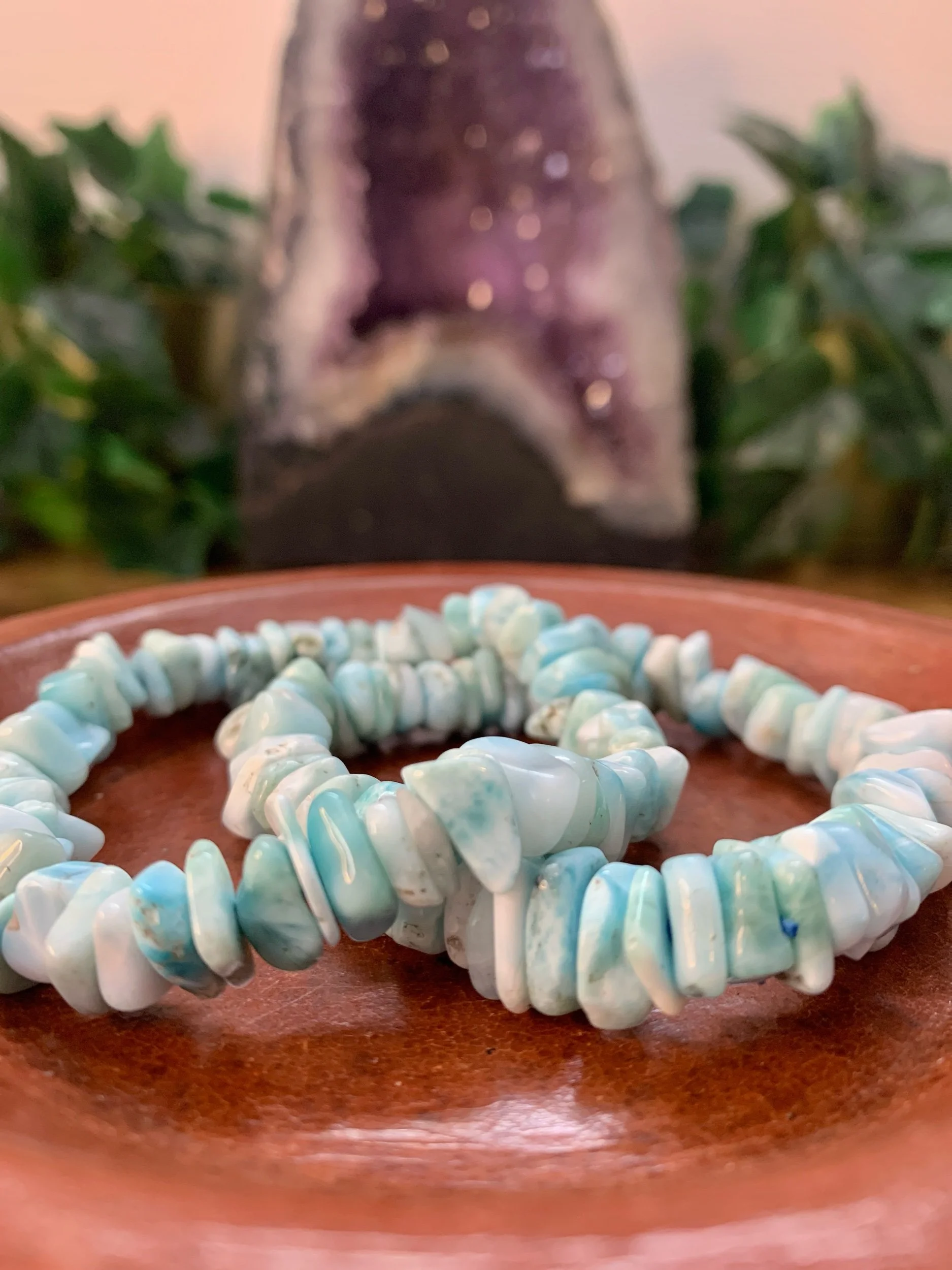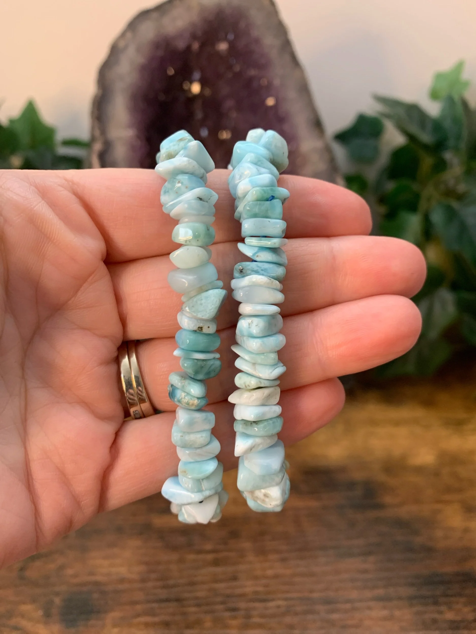 Rock the ultimate summer vibes with a rare stone Larimar chip bracelet!