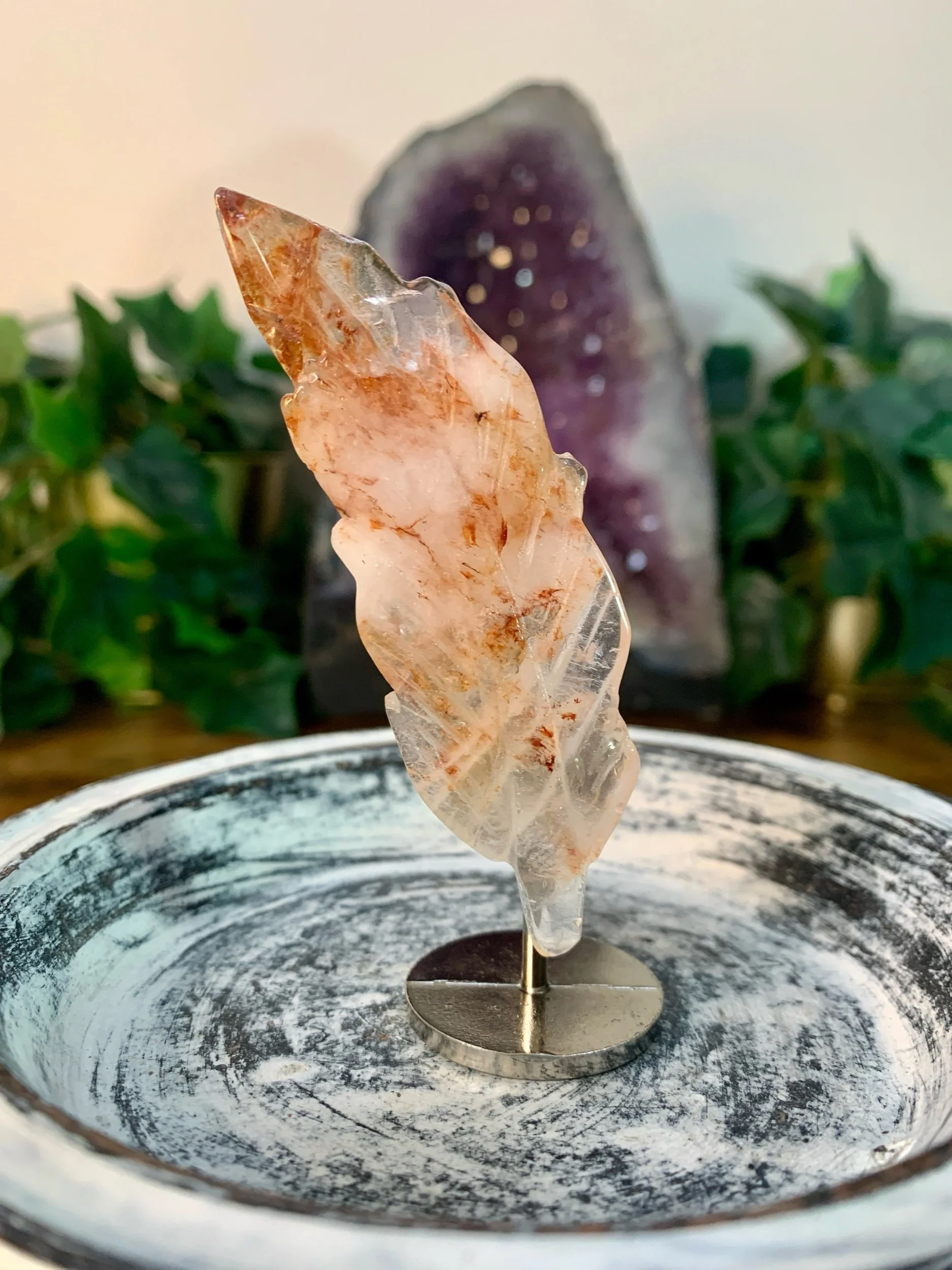 Fire Quartz feather carving.