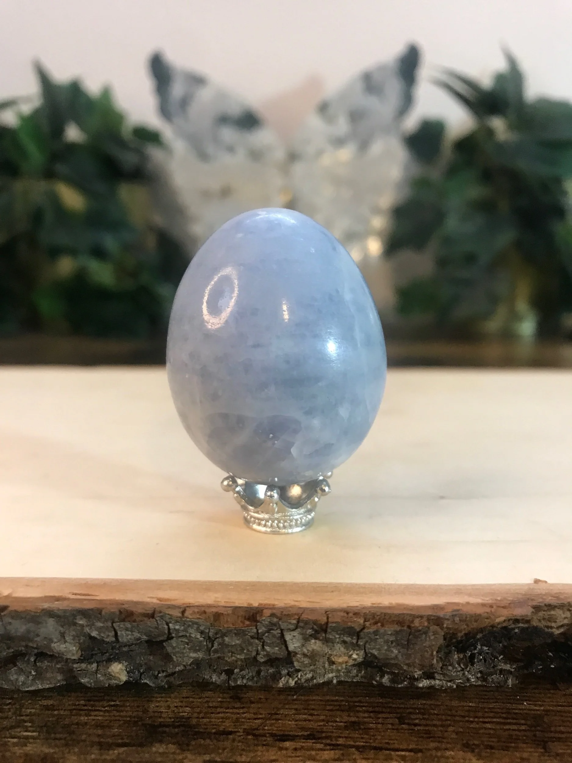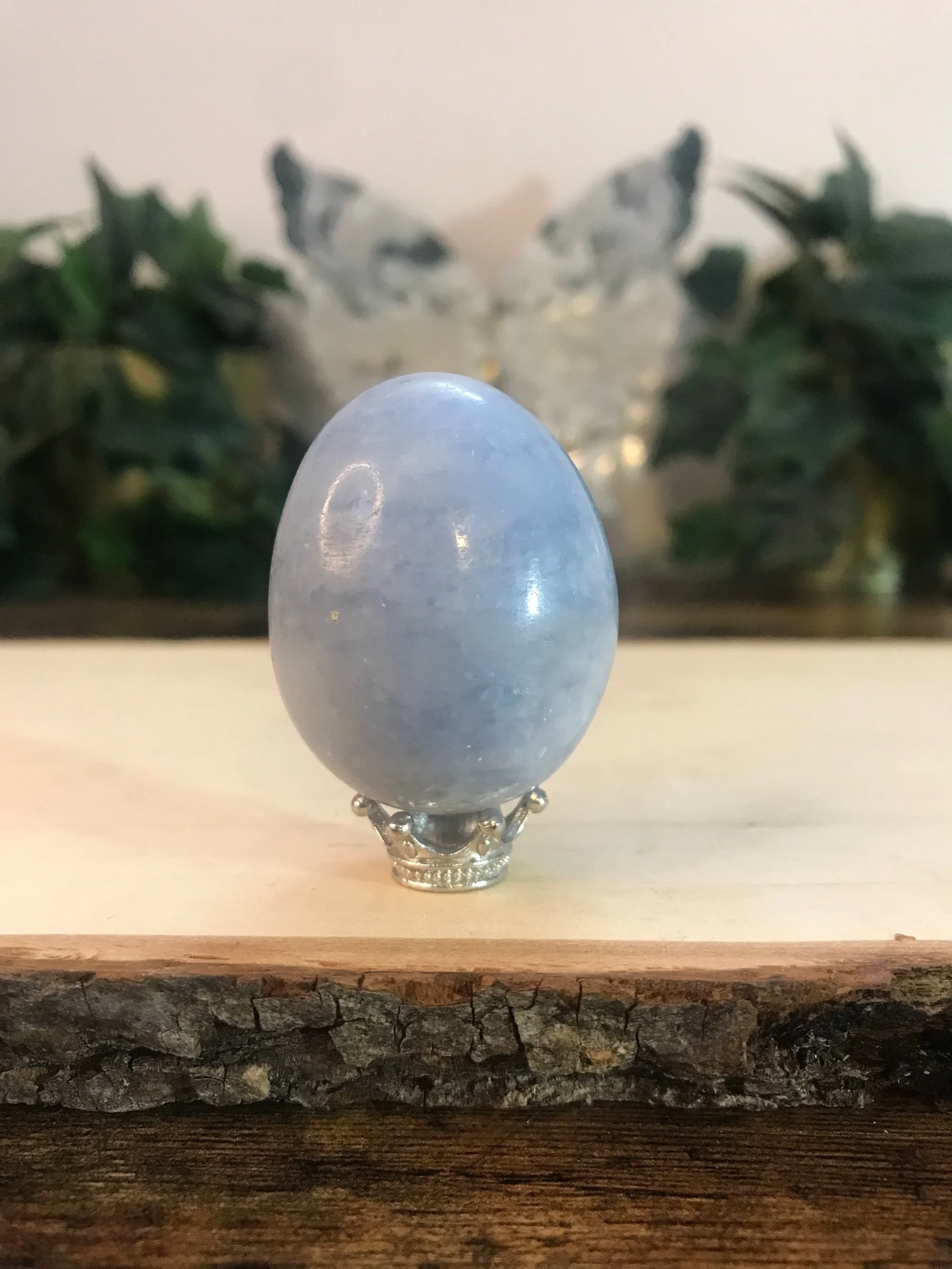 Shop All › Blue Calcite Egg Image 1 of 2 Image 2 of 2 Blue Calcite Egg $20.00 Blue Calcite Egg. Comes with silver crown stand. Add To Cart Added! Blue Calcite Egg. Comes with silver crown stand. Discover More Quick View Prehnite 8mm Bracelet $25.00 Quick View Blue Apatite Tumbled Stones $3.00 Quick View Smoky Quartz Tumbled Stones $2.00 Quick View Unicorn Stone & Amethyst Bracelet Stack $40.00 Quick View Golden Healer Turtle $9.00