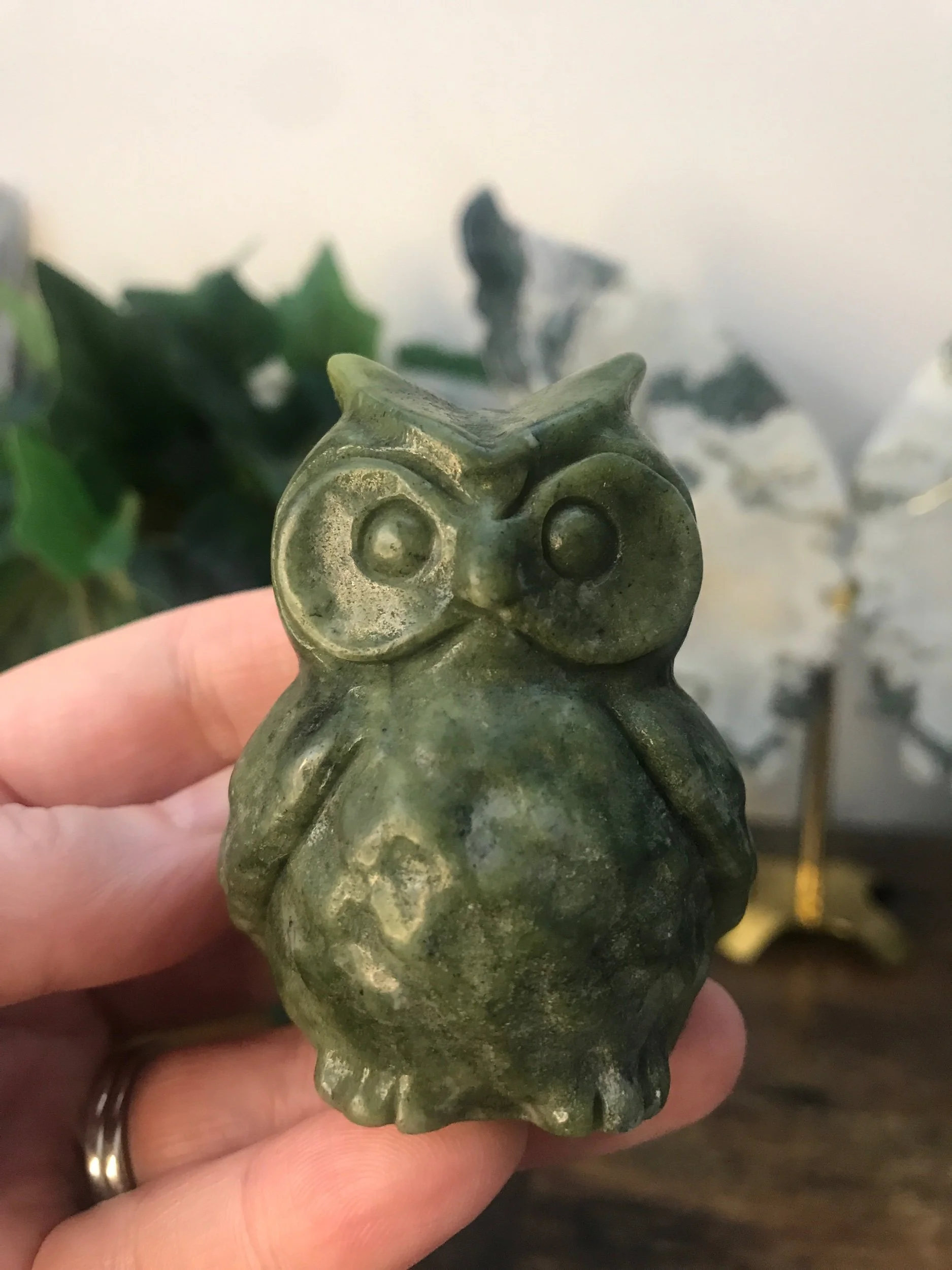 Serpentine Owl thick sized carving.